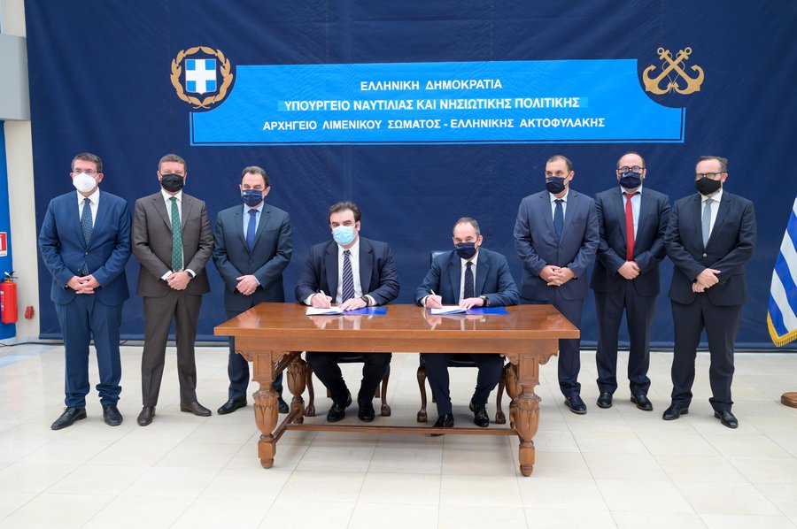 Παρόντες στην υπογραφή ήταν ο υφυπουργός Ναυτιλίας και Νησιωτικής Πολιτικής Κώστας Κατσαφάδος, ο υφυπουργός Ψηφιακής Διακυβέρνησης Γιώργος Γεωργαντάς, ο γενικός γραμματέας Απλούστευσης Διαδικασιών Λεωνίδας Χριστόπουλος, ο γενικός γραμματέας Πληροφοριακών Συστημάτων Δημόσιας Διοίκησης Δημοσθένης Αναγνωστόπουλος, ο γενικός γραμματέας Λιμένων και Λιμενικής Πολιτικής Ευάγγελος Κυριαζόπουλος, ο γενικός γραμματέας Αιγαίου και Νησιωτικής Πολιτικής Μανώλης Κουτουλάκης, καθώς και ο αρχηγός ΛΣ-Ελλ.Ακτ. αντιναύαρχος Θεόδωρος Κλιάρης.