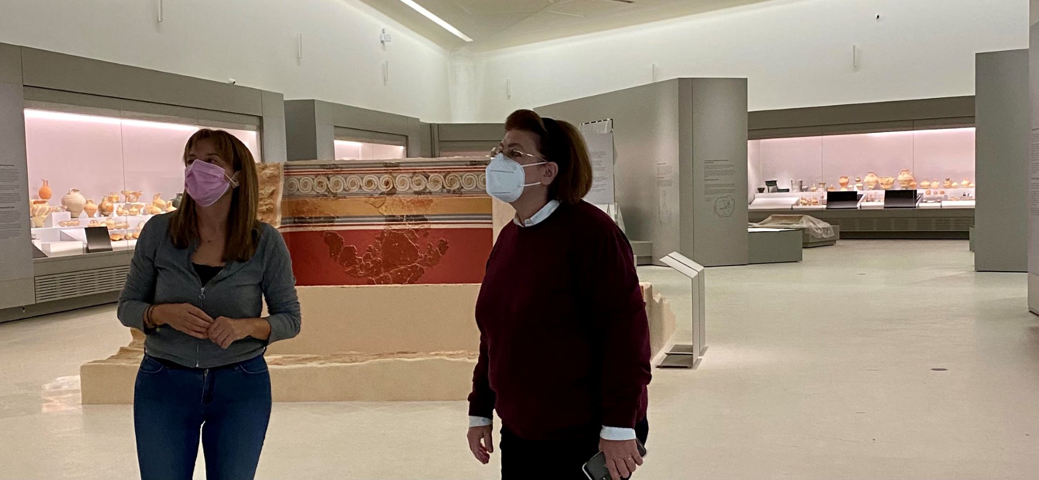 Η υπουργός περιήλθε τους χώρους στους οποίους έχουν μεταφερθεί τα εκθέματα -μια εργασία επίπονη που απαιτεί ειδικές δεξιότητες και συνεργασία πολλών ειδικοτήτων, επιστημονικών και τεχνικών- από το παλαιό μουσείο και τις αποθήκες. Η οργάνωση της έκθεσης και ο εξοπλισμός των αποθηκών χρηματοδοτήθηκε με 3.300.00 ευρώ από το Περιφερειακό Επιχειρησιακό Πρόγραμμα Κρήτης – ΕΣΠΑ 2014-2020, καθώς και από πόρους του Προγράμματος Δημοσίων Επενδύσεων του ΥΠΠΟΑ και της Περιφέρειας Κρήτης.