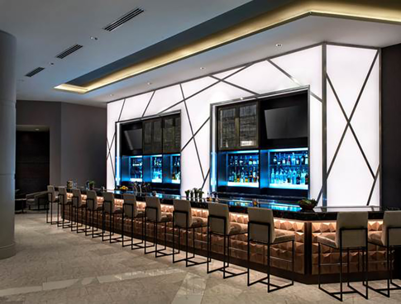 - The M Club Lounge - Marriott Bonvoy Platinum and Titanium Elite guests receive complimentary access to the M Club Lounge, an exclusive VIP oasis for those looking to work, connect, and relax both indoors and in the private outdoor patio. The exclusive lounge offers 24-hour access and amenities that include daily breakfast, premium Wi-Fi, a selection of evening snacks and beverages available for purchase, charging stations, and, most importantly, a dedicated staff.