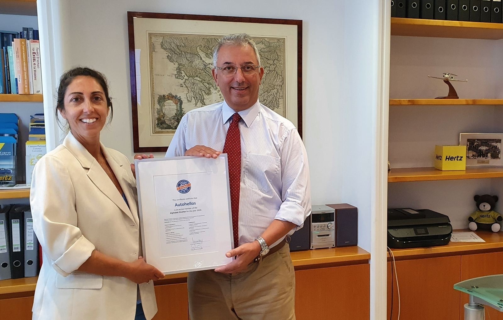 Την περαιτέρω ενίσχυση μιας σημαντικής συνεργασίας, σηματοδοτεί η πιστοποίηση της Autohellas-Hertz ως ενεργού μέλους του δικτύου της Alphabet OneNet για το 2020, αναγνωρίζοντας τον καίριο ρόλο, την συνολική προϊοντική πρόταση, αλλά και τη συμβολή της Autohellas-Hertz στην διείσδυση της Alphabet στις αγορές της Ελλάδας, Κύπρου, Βουλγαρίας και Κροατίας.