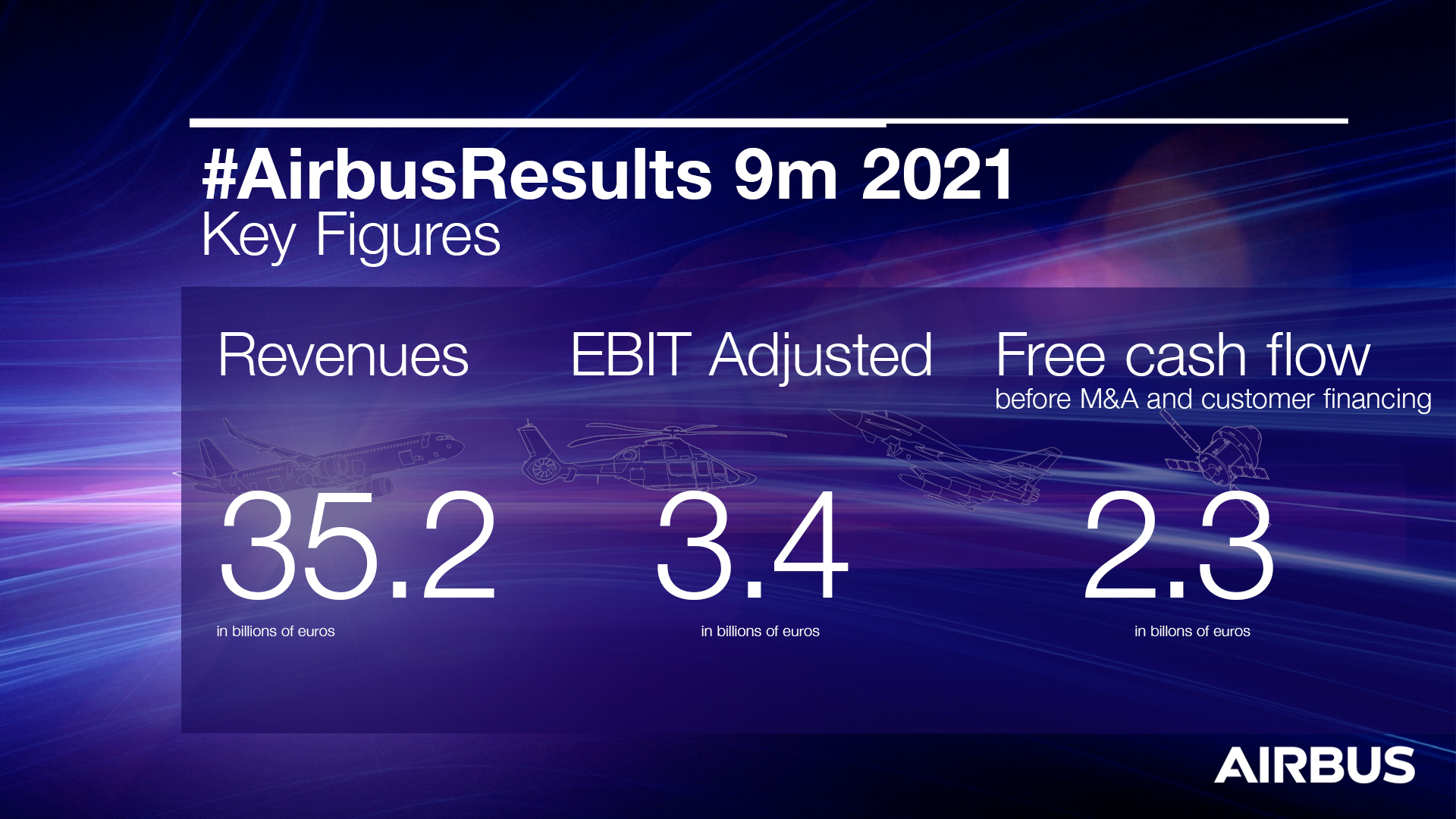 Airbus SE (stock exchange symbol: AIR) reported consolidated financial results for the nine months ended 30 September 2021.