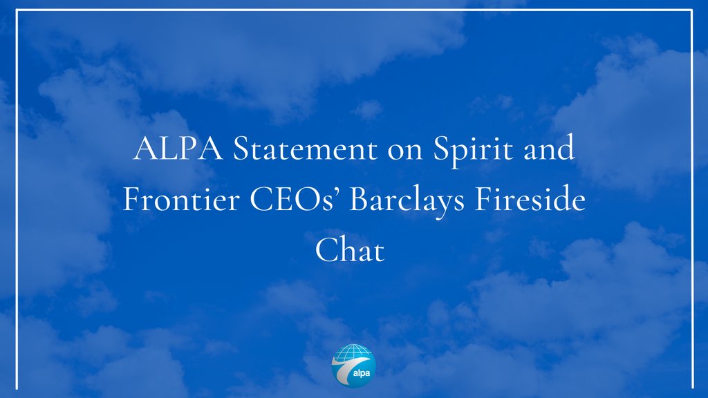 Frontier Master Executive Council (MEC) chair Capt. Alan Christie and Spirit MEC chair Capt. Ryan Muller of the Air Line Pilots Association, Int’l (ALPA) released the following statement in response to their respective chief executive officers’ comments today at the 2022 Barclays Industrial Select Conference.