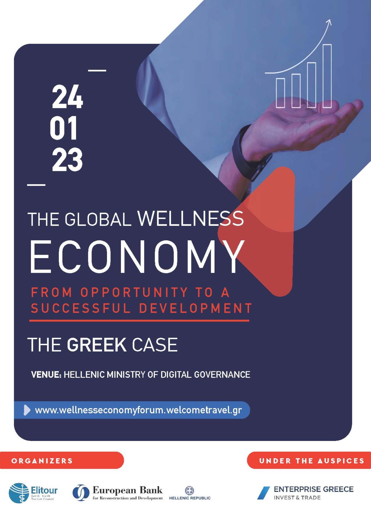 The Greek Health Tourism Council (Elitour), announce the organization of the Global Wellness Economy Forum “From Opportunity to a Successful Development – The Greek Case”, scheduled to take place as a hybrid event, on January 24th, 2023, in the Ministry of Digital Governance of Greece.