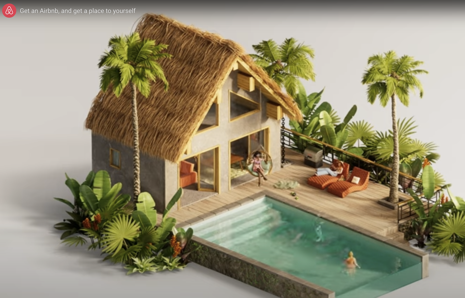 Airbnb‘s most recent campaign poses a direct challenge to the hotel industry, showcasing travelers in isolated settings, using animated illustrations, in individual hotel rooms or feeling overwhelmed in crowded hotel pools. These scenarios stand in stark contrast to the campaign’s depictions that bring people together in welcoming spaces such as a comfortable home or a secluded jungle bungalow with a private pool.