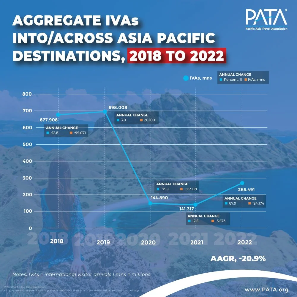 After a series of annual contractions in international visitor arrivals (IVAs) in recent years, calendar year 2022 saw 44 destinations across the Asia Pacific region end with a collective annual gain of almost 124.2 million foreign arrivals, to return a collective inbound count of nearly 265.5 million, according to a report released by the Pacific Asia Travel Association (PATA). The ‘Annual Tourism Monitor 2023’ report, released today, shows that IVA numbers in 2022 were the strongest since 2019 and, as such, herald the much-awaited resurgence of the international travel and tourism sector for the Asia Pacific.
